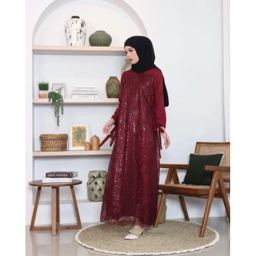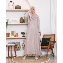 Material Brokat Premium mix Moscrepe. terdapat aksen tali yang dapat di ikat pita di bagian tangan.