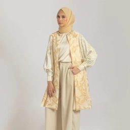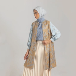Illustrates Buketan Daun Semanggi, Kembang Kelapa, and Elang Bondol patterns in a delicate crepe with net lace material.