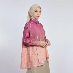 Blus ini hadir dalam 2 warna menarik Raspberry dan Fawn sebagai simbol dari laguna yang penuh keajaiban. Dela Top hadir dengan kancing tersembunyi setengah panjang di bagian depan dan kombinasi padu padan pola.