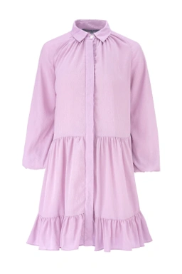 This tunic features a tiered design and a ruffle hem, adding a touch of playful charm to your look. The raglan sleeves provide a comfortable and relaxed fit, while the hidden front opening buttons offer ease of wear.