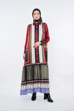 Material : Silk Size : All Size Detail Size Chest Width : 112 cm Shoulder Width : 40 cm Sleeves Length : 56 cm Sleeves Width : 40 cm Dress Length : 140 cm