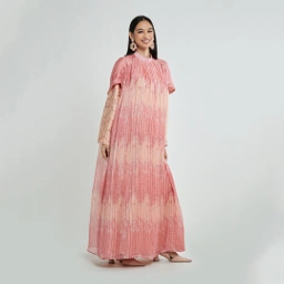 Apparel ini terdiri dari dua bagian, yaitu gaun satin dan gaun luar berlipit chiffon. Bersama-sama, mereka memberikan tekstur dan volume, menciptakan penampilanmu yang luar biasa dalam setiap acara.