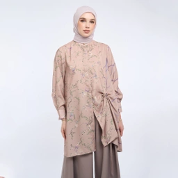 Eleni Tunic menggabungkan motif pita yang manis dan bunga-bunga kecil Florcita untuk menciptakan perpaduan yang harmonis. Dihias dengan serutan di sisi, tunik ini menciptakan tampilan yang elegan dengan desain bergelombang.