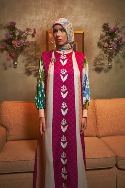 Material : Silk Size : All Size Detail Size Chest Width : 112 cm Shoulder Width : 40 cm Arm Length : 57 cm Dress Length : 140 cm