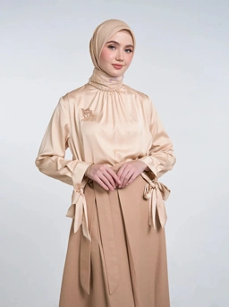 The Aruna Top seamlessly combines feminine elegance with everyday comfort. This stylish piece is adorned with adjustable tie cuffs, making it a versatile choice for layering or wearing on its own.