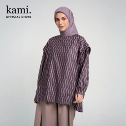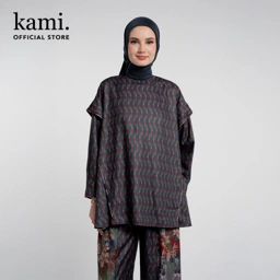 Cetta Top menampilkan siluet oversized dengan desain bahu jatuh, menampilkan ciri khas potongan Kami pada aksen depan dan belakang.