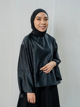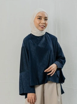 Liora top dalam pilihan warna gelap, dan bahan jacquard yang tebal dan 'jatuh', memberi kesan tegas. dilengkapi dengan aksen belahan, dan lengan lebar tanpa manset yang modern.