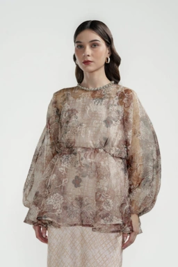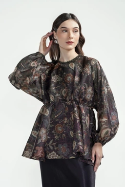 A modern twist on timeless elegance, crafted in collaboration with Raisa Andriana. This blouse blends romantic florals with a contemporary silhouette. Designed with voluminous sleeves and a cinched waist, it flatters the figure while offering graceful movement.