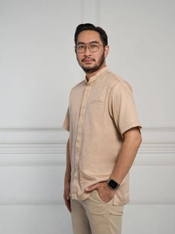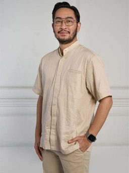 Baju koko dengan bahan yang nyaman untuk Hari Raya, dengan Kami. monocurve pada detailnya. Dilengkapi dengan saku depan untuk penyimpanan.