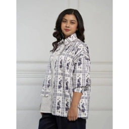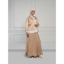 Prisa top menampilkan print floral minimalis, dengan layer renda yang unik di bagian depan. Cocok untuk tampilan klasik dan rapi di Hari Raya.