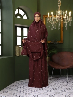 GHANIEA- Ainun Telekung Embroidery Mukena Sulam Travel Premium Nylon Silk Mukena Bordir