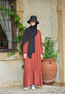 Material : Sophia Color : Black, Terracotta, Emerald, Broken White Size : All Size Details size: DRESS: Chest width116 cm Sleeves length 60 cm Dress length 140 cm