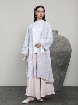 Lengkapi outfit polosmu dengan Eirene outer. Cocok untuk berbagai acara dengan gaya kimono yang nyaman dan bahan semi-sheer.