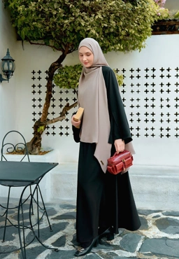 Material : Arabian Crepe Colors : Taupe , Black , Maroon , Broken White , Stone Grey , Navy Size : One Size Detail Size : Front length : 145 cm Back length : 138 cm