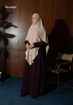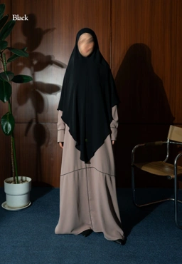 Kufah khimar ini dirancang dengan potongan segitiga di bagian depan untuk tampilan yang lebih ramping, dan bagian belakang berbentuk ouval agar tetap menutup punggung dan memberikan coverage yang maksimal.