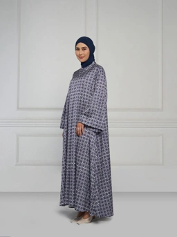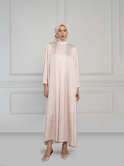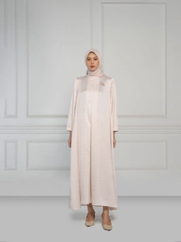 Tampil elegan di momen Raya dengan Rania dress. Model A line dengan bahan satin jacquard, dilengkapi dengan lengan lebar dan bukaan kancing belakang.