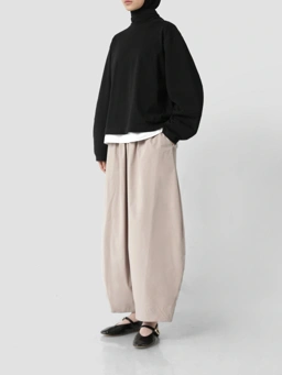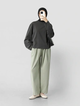 4. Leher kerah bulat yang pas dan nyaman sehingga leher tetap tertutup saat menggunakan style hijab yang diikat ke belakang.