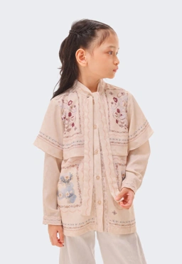 The Sazain Girl Top from RiaMiranda's Lentera Raya Collection 2026 exemplifies thoughtful design for the discerning wearer. Constructed from textured lines material, this modest layered silhouette features integrated long sleeves and a functional front opening for versatile styling. The refined neck detail and strategic paneling with print accents elevate the piece beyond basics. In the sophisticated Cannoli Cream colorway, it offers understated elegance suitable for both everyday wear and special occasions. Sized S through XL, this top balances contemporary aesthetics with modest coverage principles.