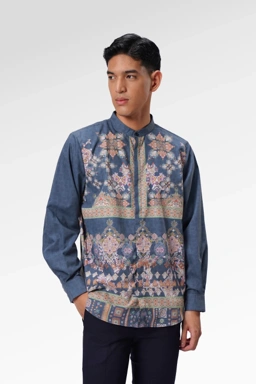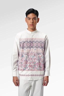 Inspired by the ornate patterns of Moroccan architecture, this long-sleeve men’s shirt features a Shanghai collar and a hidden front button placket, it keeps the look clean while letting the pattern stand out. The long sleeves are finished with buttoned cuffs, versatile fit that works for formal gatherings or relaxed family moments. Crafted from lightweight, breathable fabric, this piece is made to feel comfortable throughout the day.
