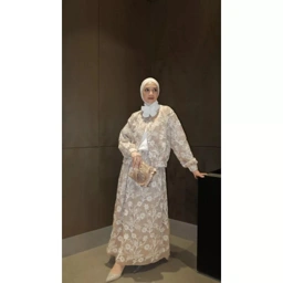 Setelan atasan dan rok berbahan organza bordir dengan full furing, nyaman dipakai dan tidak menerawang.