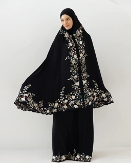 elicately embroidered and softly draped, this prayer robe is designed to bring comfort and stillness to your Ramadan prayers. Inspired by the purity of jasmine and the beauty of roses, each detail reflects the essence of the sacred month, creating a sense of peace in every moment of worship.