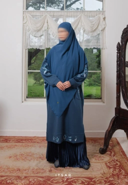 Introducing The Granada Jardin Set, a syar’i two-piece designed for soft moments and meaningful gatherings. Created especially for your day-two Idul Fitri silaturahmi — when visits are longer, hugs are warmer, and comfort matters most. Granada Jardin Set brings together a relaxed tunic and a shiny pleated skirt, offering effortless elegance without compromising syar’i values.